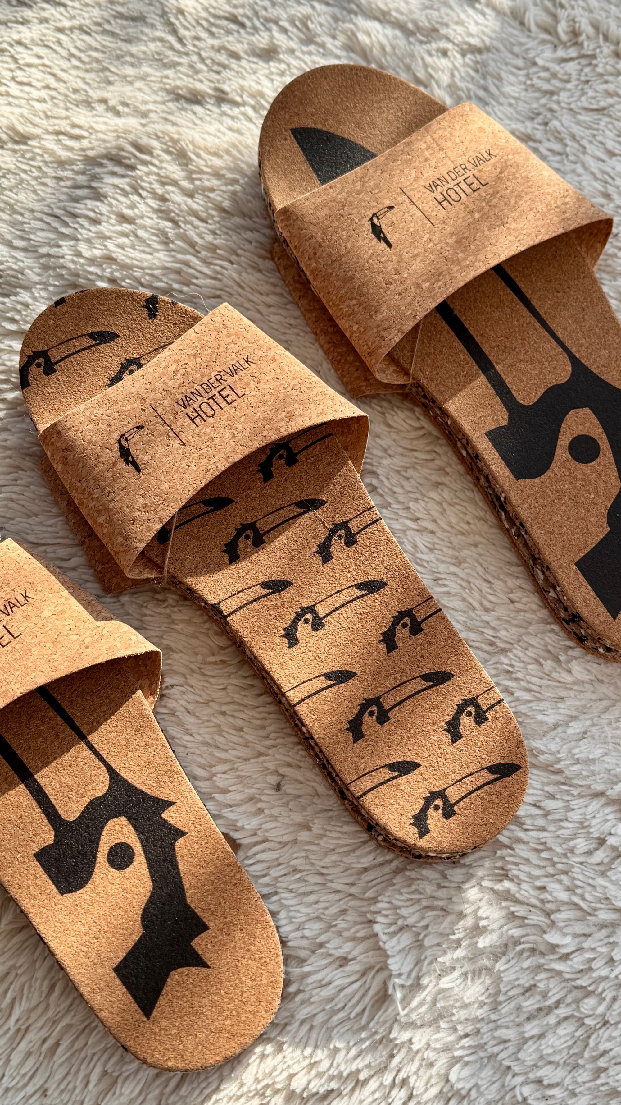 Cork is a supportive material that is extremely comfortable, lightweight, anti-bacterial, moisture wicking, heat regulating, shock absorbing, and cork also boasts a high friction coefficient on wet surfaces - making it the ideal material to replace single-use synthetic slippers.